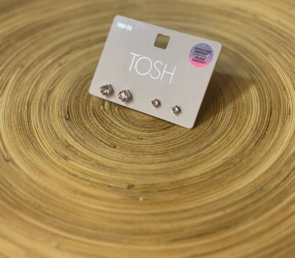 گوشواره میخی پک دار دوتایی نگین سواروسکی